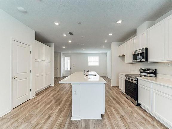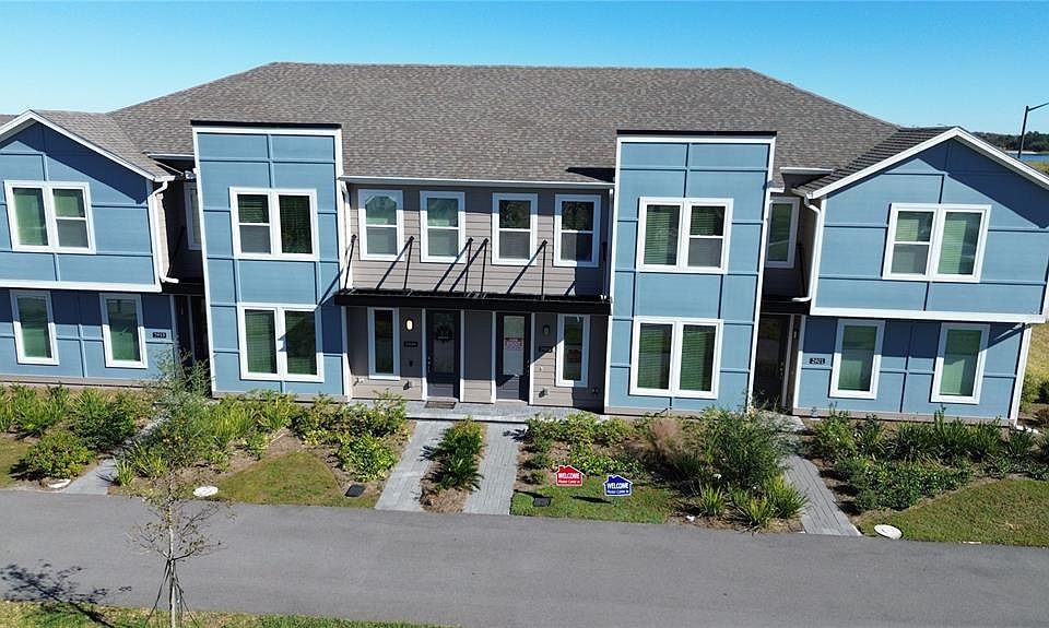 Gorgeous brand new townhome located in St. Cloud just minutes from Lake Nona. This 3-bedrooms/2.5 bath offers an open space concept which features a bright, open floorplan and kitchen with plenty of upgrades such as beautiful 42 inch shaker cabinets; quartz counter tops in kitchen with a large island for entertaining ; stainless steel Samsung appliances including range, dishwasher, and microwave; Enclosed paved Courtyard lets you enjoy private evenings in the intimate setting. Covered breezeway connects with a detached 2 car garage. This home utilizes energy efficient construction such as double pane Low-E vinyl windows, water saving plumbing fixtures, R-30 ceiling insulation, and LED lighting throughout. Plus, 7 year limited structural warranty! The master-planned community of Weslyn Park at Sunbridge is the kind of neighborhood where herb gardens and parks invite quiet reflection. Spend your free time connected to nature on the walking/cycling trails, by the pool or at the Marina fishing or canoeing.