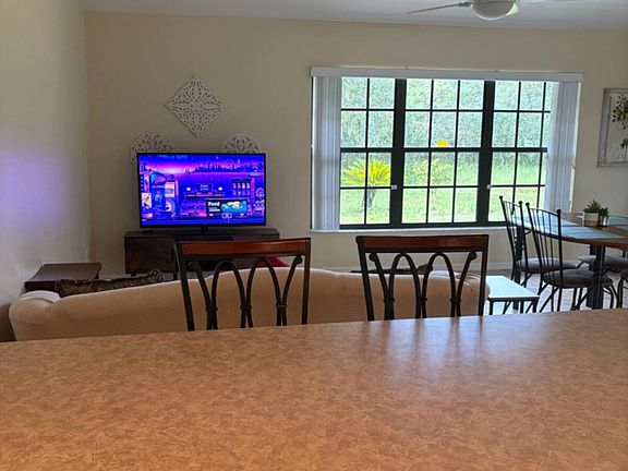 Single house with 3 bedrooms, 2 bathrooms plus office room , kitchen, washing and drying, 2 cars garage, spacious driveways, 1 acre lots backyard with no neighbors next to you.
