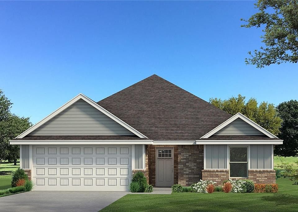 This Bogan Floor Plan includes 1,510 Sqft of total living space, which includes 1,400 Sqft of indoor living space & 110 Sqft of outdoor living space. There is also a 395 Sqft, two car garage w/ a storm shelter installed. Home offers 3 beds, 2 baths, 2 covered patios, an office, & a utility room. Living room welcomes wood-look tile, large windows, a ceiling fan, & wires for your TV. Kitchen has granite or quartz countertops, Frigidaire stainless-steel appliances, wood-look tile, well-crafted cabinets w/ decorative hardware, & stylish tile backsplash. Primary suite is straight ahead & features carpet flooring, a ceiling fan, & perfect-sized windows. Primary bath offers a dual sink vanity w/ elegant countertops & backsplash, a walk-in shower, an elongated water saving toilet, & a HUGE walk-in closet! Outdoor living is covered & has fully sodded yards w/ a water saving sprinkler system. Other amenities include a tankless water heater, a fresh air intake ventilation system, & so much more!