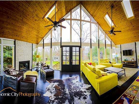 Signal Mountain history meets todays modern architecture and style, this unique and distinctive home offers charm and comfort inside and out. Enjoy easy entertaining and living! Beautiful heart of pine floors, wooden trim detail and an abundance of natural light makes this home welcoming from the start. The updated kitchen includes granite counter tops, stainless steel appliances, a breakfast bar and a keeping room perfect for morning meals before heading out the door. The rustic formal dining room with original log cabin walls is as fascinating as it is purposeful, a great space for easy conversation over drinks. Spill over into the recently finished den where everyday living is appreciated. The vaulted ceiling, floor to ceiling windows, decorative river rock walls and gas fireplace all add to the ambiance and appeal of this space while providing additional room for family and friends. The main level offers a master on the main, convenient laundry room and additional bedroom or office with full bath. The second level is perfect for kids and guests with two additional bedrooms with shared bath. Need extra living quarters? Dont forget the guest house which offers a spacious living room with wood burning stove, large bedroom, a full bath plus additional storage. Make this space your own! Situated on nearly two acres, enjoy the landscaped yard on the covered front porch or on the flagstone back patio. This home is truly one of a kind and a must see for anyone looking for a home offering unique and distinctive, charm and comfort.