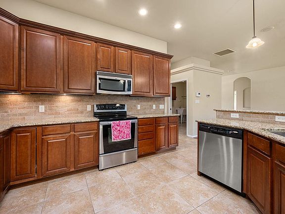 Small pondLarge primary suiteBeautiful granite islandVaulted ceilingsLarge pantry closetCovered patioSpacious bedrooms