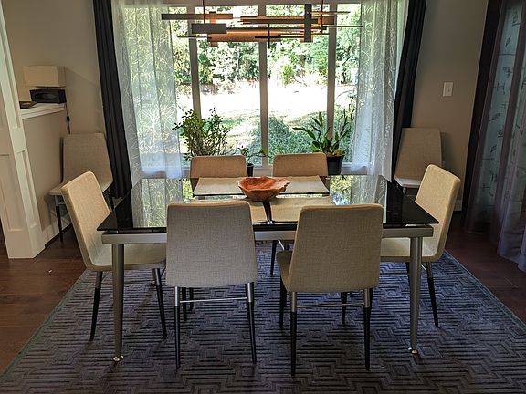 Furnished 1967 modernist home on 0.6 acres, completely renovated in 2014 and meticulously maintained. Lots of windows and great natural light. Four bedrooms + bonus room, 3.5 bathrooms, ample closet and storage space. Master bedroom includes a private balcony overlooking mature trees and a well-kept lawn; from it you can enjoy birdsong by day and the soothing calls of barred owls by night. The home includes a detached garage (suitable for one car, with ample storage space in the second bay) and a fenced back yard with fruit trees. The home is located in a beautiful neighborhood with friendly neighbors; car traffic is minimal since it's in a private cul de sac. The neighborhood HOA hosts well-attended social gatherings throughout the year. The community pool, which is currently being completely renovated, is scheduled to reopen on Memorial Day 2026 and will be open through Labor Day. The home is located a 5-minute drive from the nearest grocery store, 5 minutes from wooded trails and parks, 6 minutes from Duke West Campus, and 15 minutes from UNC. Minimum lease 6 months; preference will be given to applicants seeking a lease through at least June 2026. Absolutely no smoking or vaping in the house or on premises. Payments for electricity, water/sewer, and internet are responsibility of tenant. (There is no gas connection to the house.) First month's rent plus security deposit equal to one month's rent due at signing. All adult occupants (18 or older) must be listed on the lease and approved by the landlord.