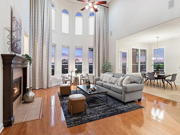Every sunset feels cinematic from this hilltop retreat in the Vistas at Lake Travis, where 2.69 acres of curated privacy meet the relaxed rhythm of lake and Hill Country living. Designed for both connection and calm, this custom luxury home in Spicewood, TX 78669 blends Mediterranean-inspired architecture with versatile living. A flexible 4–5 bedroom layout includes dual home offices, a large upstairs game room, and over 400 square feet of walk-in decked storage above the attached two-car garage, while an additional detached two-car garage adds room for vehicles, a workshop, or boat storage. Walls of windows in the formal living and great room flood the space with natural light and frame uninterrupted panoramic views of Bee Creek and the rolling hills beyond. The open kitchen anchors the home with granite counters, warm wood cabinetry, a built-in wine bar, and ice maker, all flowing into both formal and informal dining areas. The main-level owner’s suite is a retreat in every sense, featuring a private sitting area with breathtaking views, a spa-like bath with an island soaking tub, a walk-through double shower, and a custom closet system with built-ins for effortless organization. Outdoor living is elevated with a resort-style pool and raised spa, surrounded by natural stone, tranquil grotto fountains, and mature trees. The detached cabana includes a full bath, walk-in shower, and a bar for relaxed poolside gatherings, while the true outdoor kitchen—with grill, sink, and sit-up bar—is located just off the informal dining area on the expansive wraparound composite deck. With built-in seating and endless Hill Country skies, the deck invites al fresco dining year-round. Located in a scenic HOA community near Lake Travis marinas, recreation, and top-rated schools, this is more than a modern Hill Country home—it’s a rare private estate where luxury, lifestyle, and location align. Schedule your private tour today and experience this view-driven sanctuary for yourself.