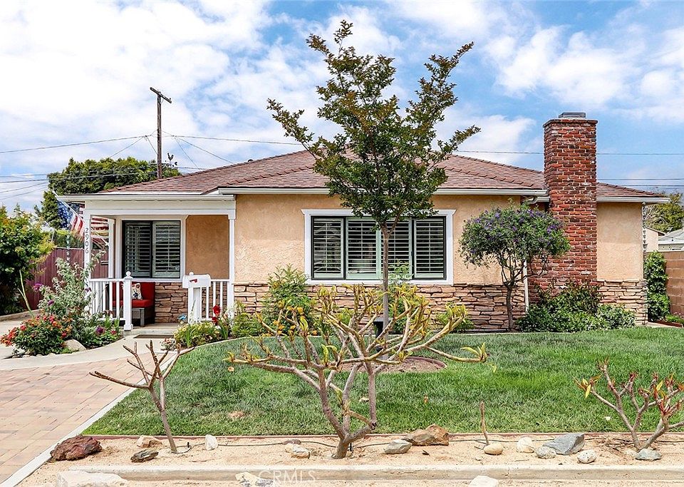 Welcome home to this darling single family home in the TRW tract of Redondo Beach. Award winning schools, proximity to the beach, restaurants, neighborhood, parks - this location has it all! Enter into this lovely home with wood floors and a remodeled floor plan. Large picture windows showcase the grassy landscaped front yard from the cozy family room. The first bedroom with fireplace is currently used as an office and is off the family room. There is a sunny dining area that opens to the kitchen which has been remodeled with updated cabinets and an eat-in kitchen area. Down the hallway, you will find 2 large bedrooms, one with an en-suite bathroom and large walk in closet. There is a bathroom with a tub in the hallway shared by all bedrooms. At the end of the hall find the laundry area and a large bedroom looking out on the backyard. The detached 2 car garage can be used for parking, storage or easily converted to an ADU. There is an extra storage area attached to the back of the garage that has been permitted - lots of possibilities. The long driveway leads to a back yard with a great entertaining area and amazing fruit trees including apple, plum, orange, strawberry guava, fig, apricot and persimmon trees!! The home has a brand new roof, newer furnace and water heater as well as new carpet and paint. You won't want to miss this great home!