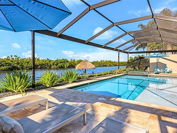 Experience a quieter kind of luxury in this Direct Gulf-Access Home with panoramic views of the Spreader Waterway and Conservation Nature Preserve. Custom-built by renowned luxury home builder Aubuchon Homes, perfectly positioned on an oversized .36-acre corner lot at the end of a peaceful cul-de-sac. Offering 155 feet of seawall (nearly double the frontage of standard lots), this rare waterfront estate captures panoramic views of the 200 ft+ Spreader Canal, uninterrupted preserve scenery, and complete privacy with no neighbors in sight. It’s the ultimate retreat for those seeking tranquility, nature, and effortless access to world-class boating, fishing, and waterfront dining. Inside, nearly every room showcases long-water and preserve views, blending modern luxury with a subtle touch of retro charm. Spacious living areas are filled with natural light, and the thoughtfully designed floor plan includes a primary suite and a junior suite, ensuring privacy and comfort for you and your guests. With 3 bedrooms, a private den/office, and 3 full baths, the home offers flexibility for hosting, working remotely, or simply unwinding in total serenity. Offered furnished - move right in and start enjoying immediately! Designed around Southwest Florida’s iconic indoor/outdoor lifestyle, the home features a brand-new panoramic screen enclosure, an expansive travertine lanai, and a resort-style pool area with a heated pool & spa ideal for staying active and swimming laps or simply relaxing waterside. Enjoy unforgettable evenings under your tiki hut, quiet afternoons on your private dock, or rinse off after a day on the water in the open-air outdoor shower. A rarely found SW exposure! With SW exposure, your pool area is bathed in sunlight throughout the day and delivers spectacular, postcard-worthy sunsets every evening. Two covered outdoor living areas create distinct spaces for entertainment and relaxation, one ideal for al fresco dining, the other for lounging breezily by the water. Whether you’re watching manatees cruise the canal, admiring the vibrant birdlife of the protected preserve, or enjoying a quiet sunset cocktail, every moment feels like a natural escape. Best of all, while the home feels secluded and tucked away in nature, you're still only a few minutes from top restaurants, local cafés, grocery stores, boutique shops, and daily conveniences - offering the perfect blend of privacy and accessibility. With direct sailboat access and no bridges, you can head out to Sanibel, Captiva, Fort Myers Beach, or the Gulf directly from your backyard. Recent Improvements Include: New Air Conditioning installed in June 2025, New Pool Screen and Cage installed in April 2024, New Pool Pump installed January 2023, New Pentair Intellichlor IC20 Pool salt cell January 2025. Beautifully maintained and a private luxury oasis that feels like a vacation every day.