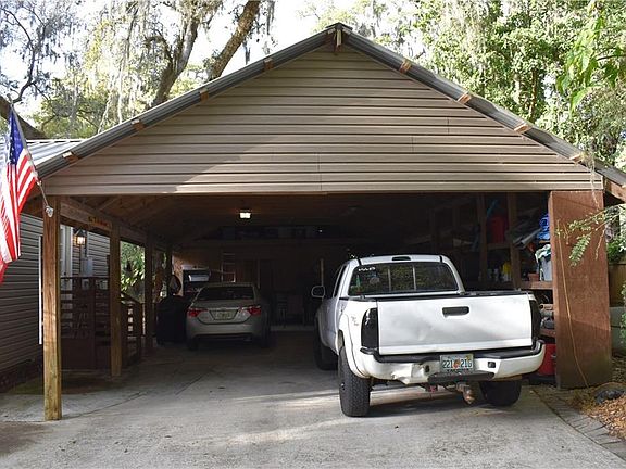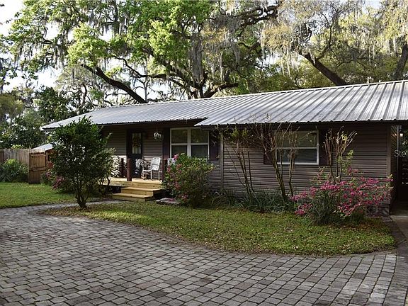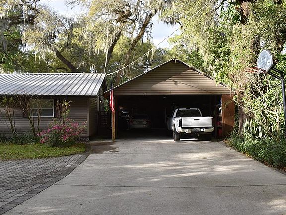 Your new home in a beautiful, quiet neighborhood awaits. Mature oak trees lining the street will remind you of old Florida. This 3/2 is accompanied by a massive 1100 sq/ft carport and 200 sq/ft storage area. The metal roof and newer AC have plenty of life left in them. A fully fenced in lot with gate access will keep your pets and property secure. The kitchen and dining area open up to the backyard through french doors, leading you out to the deck and fire pit. On cold nights, relax in the hot tub and light up a fire at your new home. The house could use some TLC, but is perfect for someone looking for sweat equity or an investor. The house is livable as-is however. There's an unfinished room that could be used as an office, studio or storage in the house. Knock a wall down and the room could add square footage to a bedroom, bathroom or the kitchen. No HOA or CDD. The boat can be negotiated into the sale. Very low inventory at this price range, call today or you will miss out!!!