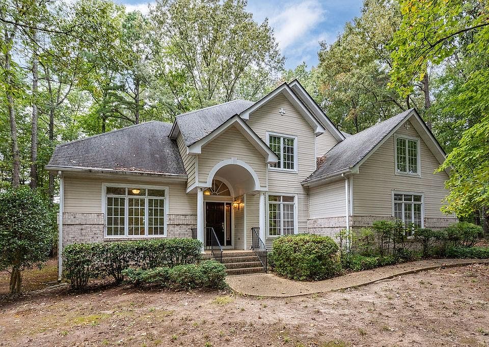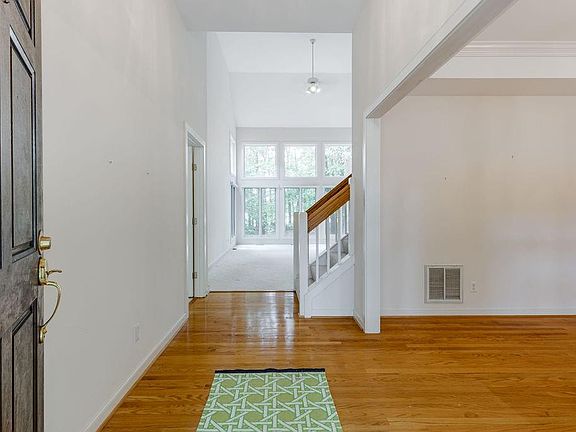 Situated at the end of a cul-de-sac, this spacious home sits on almost an acre lot with an expansive, private wooded backyard. Designed with an open floor plan and soaring ceilings, the home gets lots of natural light. There is a unique 3 sided gas fireplace for a panoramic viewing from all rooms. The eat-in kitchen is open to the family room and there is a large pantry. The dining has a tray ceiling and wood flooring. The first floor also offers a primary bedroom and en suite bath with a soaking tub, shower, double sink vanity & private water closet. Three more bedrooms & 2 additional baths are located on the 2nd floor. There is an attached oversized 2 car garage and paved driveway. Sliding glass doors off of the eat-in kitchen lead to a large deck. This is an excellent buy for the area!