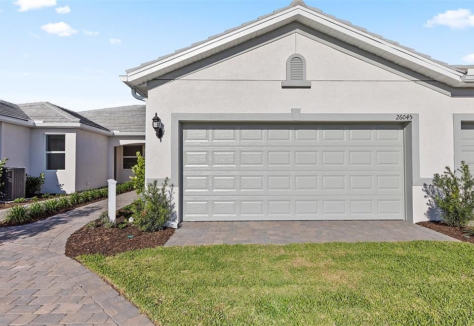 Under Construction. Welcome to the Seagrove floorplan, a beautifully designed quad home featuring 2 bedrooms, 2 bathrooms, a versatile den, and a spacious 2-car garage. This home offers thoughtful upgrades throughout, including an oversized shower in the owner’s suite for a luxurious feel, added cabinets in the laundry room for extra storage, and a convenient sink in the garage. Enjoy outdoor living with a large patio extension, perfect for entertaining or relaxing. Inside, elegant French doors lead into the den, while crisp white cabinets and quartz countertops create a modern and bright kitchen space. The home is further enhanced with 6x24 tile flooring throughout and 8-foot interior doors, combining style and functionality in every detail. The amenities features 21 sports courts including pickleball, tennis and bocce ball, a resort style pool with a beach entry and attached lap pool with multiple swim lanes, boardwalk with a kayak launch, memorial garden, community garden, dog park, miles of trails, gated entry with guard, second gate to Manasota Beach road, full time activity director, and an 11,000 sq ft fitness center featuring a cafe and 2 restaurants.
