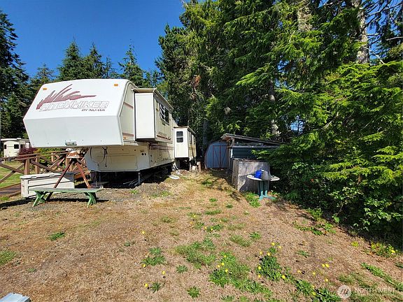 Here's your chance to own your dream beach lot! Beautiful level lot on a secluded cul-de-sac with fire pit, and three sheds with power to one. Two RV hook ups: 30 amp and 50 amp. INCLUDED IN THE SALE, in 'as is' condition, is a 1995 HitchHiker 35 foot, 5th wheel with 2 slide outs. Keep and refurbish or sell per desire. Lot has multiple gorgeous shrubs and is heavily forested to the back all making for a very private and secluded lot. Located in the highly desirable Sunset Sands with private access to the park, clubhouse, boat ramp and Loomis Lake. Lot uses include recreation or possible build. Buyer to verify all.