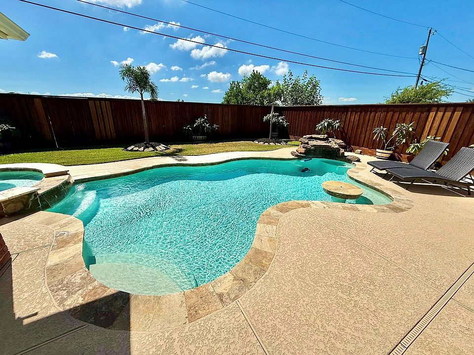 Newly resurfaced poolSpacious backyardPrivate outdoor oasisInviting open floor planLush manicured landscaping