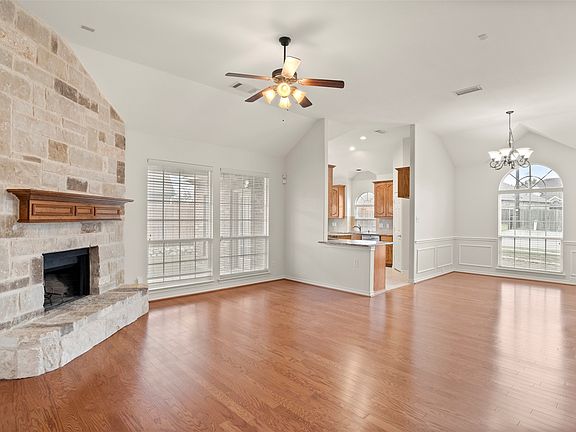 Stone fireplaceFresh paintBeautiful wood fenceGranite countertopsPlenty of natural lightCorner lotTall ceilings