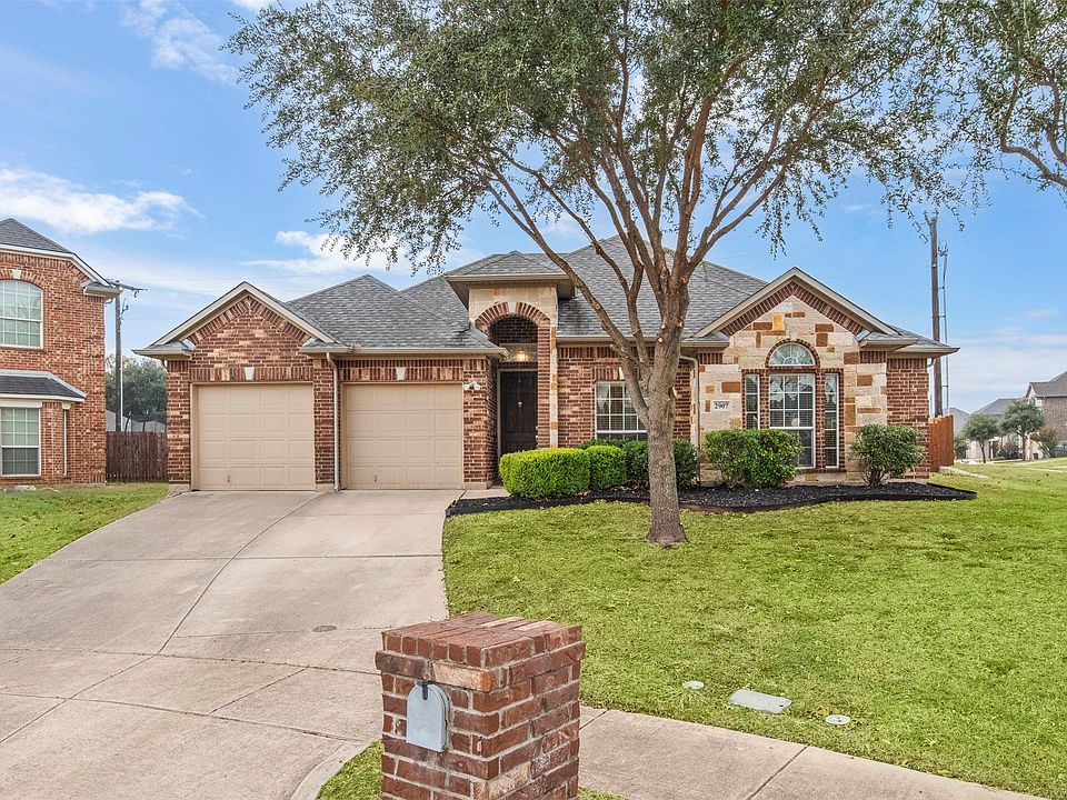 Charming 4 bed, 2 bath brick and stone home featuring an open-concept layout on a corner lot. Don't miss the spacious living room and stone fireplace. With fresh paint and new carpet throughout, this house is ready for you to call home! The large kitchen offers plenty of cabinetry, granite countertops, and plenty of natural light flowing into a dining area with beautiful windows. Tall ceilings and bright interiors make the home feel spacious and lively throughout. Outside features a back patio for relaxing, a beautiful wood fence, a 2-car garage, and a prime location near Joe Pool Lake with quick access to Hwy 360, shopping, and restaurants.