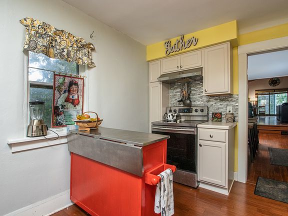 YESTERDAY MEETS TODAY! The original home was built in 1898, remodel completed in 2016. Exterior stucco is with full bricks underneath. Updates include roof, most windows, Kitchen with new stainless steel appliances, 5 burner range, cabinets and backsplash. Remodel includes Family Room with soaring cathedral cherry wood ceiling, wood burning fireplace, laminate flooring, and great closet/storage space, plus sliding glass door out to a deck. Lots of hardwood flooring. Flooring new in all the bedrooms. Main bath updated. Formal Dining Room. Living Room with additional fireplace. Over-sized 2+ car garage. One of the oldest homes in the area - part of the original DJ Stewart family homestead. The artwork/mural in lower level foyer professionally painted by artist and Stewart family member.