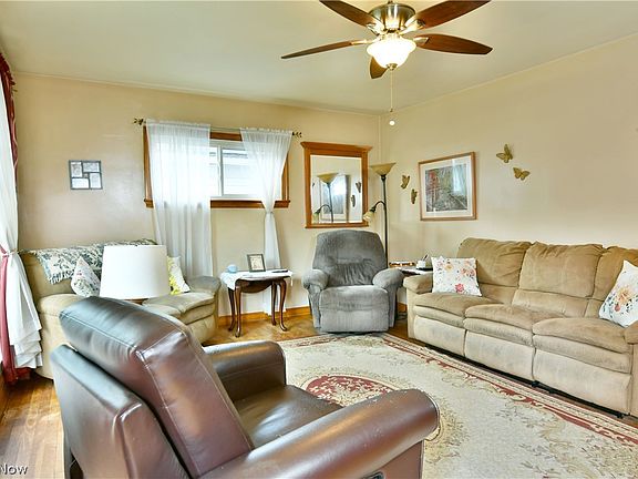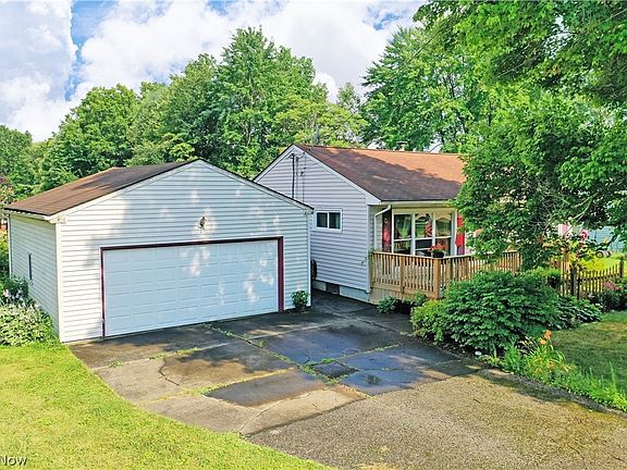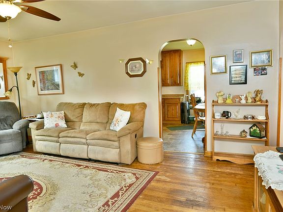 Find cozy comfort with the colorful and well-kept living space of this lovely Howland Township home! This attractive little ranch showcases great looks inside and out that are sure to make you fall in love. Sat on a prominent corner lot, the home enjoys the shade of a tall tree as you relax or enjoy a meal on the fantastic front porch. An ample backyard slopes away, offering plenty of room for activities. Step inside to find a welcoming living room, filled with hardwood flooring and an abundance of natural light courtesy of the oversized picture window. Sculpted archways lead into the nearby kitchen and adjacent hall. The updated kitchen contains a large galley layout with Kraftmaid cabinets lined on both sides of the room as bright white appliances complement the tile look flooring below. Eat-in dining space is included at the far end. Meanwhile, a pair of inviting and nicely sized bedrooms complete the floor, delighting with endearing colors, hardwood flooring, and ample closets. A charming full bath divides them at the end of the hall. Laundry service and storage are located at the basement level. Updates include: vinyl replacement windows 2015, hot water tank 2021, new front deck 2021, air conditioner 2023, and so much more. Plus a one year home warranty!