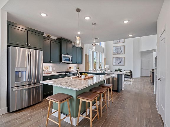 Popular Model Home Plan! 4 beds, 2.5 baths, 2 car garage, game room, study, large shower option at main bath, covered rear patio, soaring two-story family room! 42” Decorator White Cabinets upgraded satin nickel package, quartz c-tops in kitchen & all baths, upgraded wood look tile in all main areas + study, upgraded pendant lighting. Full gutters, sprinklers, tankless water heater, 2" blinds all included!