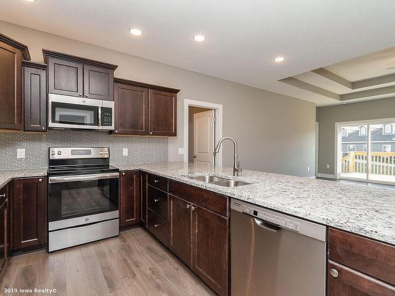 This is the lifestyle you have been waiting for, get rid of the snow blower & mower-you won't need them here This MELROSE RANCH TH plan, quick & easy access to ALL that ANKENY has to offer, is sure to please. Great curb appeal...vinyl siding, stone accents, covered front porch, irrigation & landscaping. Open flr plan 1661 sq.ft. fin on main level, split BR's, spacious Kit /beautiful Espresso staggered Cabinets, Pantry & granite ctops. Main floor Laundry Rm, Great Rm double box ceiling, plus a Gas FP shiplap. LL has 1054 SF. finished, featuring 9ft ceilings, 4th BD walk-in closet, 3rd BA, FR and plenty of extra storage. Every Hubbell Home includes a passive radon mitigation system and testing, JELD-WEN windows, Kohler fixtures plus. Association takes care of snow removal, lawn care, irrigation, trash, exterior maintenance & exterior insurance. Assoc Fees: $185/month