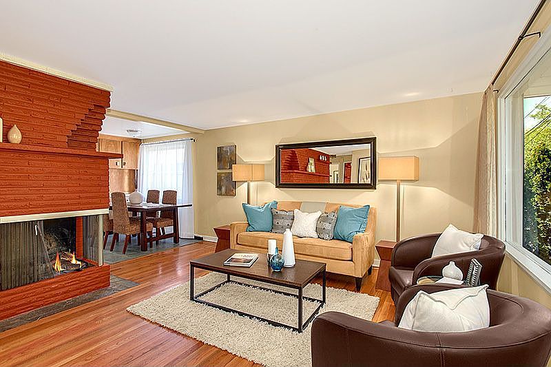 Excellent opportunity to own in Magnolia! House is situated high-up on a quiet dead-end street, surrounded by higher-end homes. Enjoy VIEWS of the Canal & Cascades from your front porch. Open floor plan, spacious kitchen w/ newer range, hardwood floors, fireplace, double-pane windows, lots of room for your creativity. Big fenced-in backyard w/ covered deck, great for entertaining! Easy access to Downtown, Discovery Park, Lawton Elementary/park, and the shops & eateries in The Village.