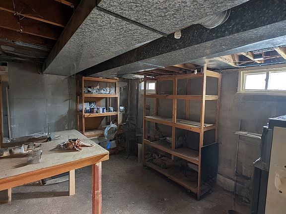 Finished basement featuring a spacious bedroom, new flooring, and a refreshed laundry area