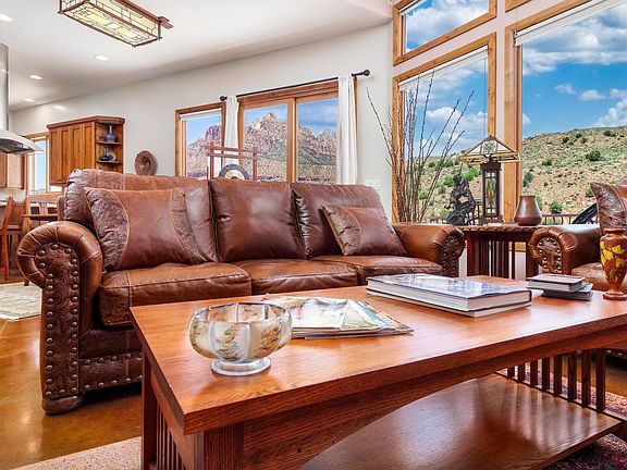 Experience elevated living in Springdale, Utah—just minutes from the entrance to Zion National Park. Nestled at the end of a private cul-de-sac, this 3-bedroom, 2-bath luxury residence is surrounded by a conservation easement, offering both privacy and the feeling of an expansive estate.