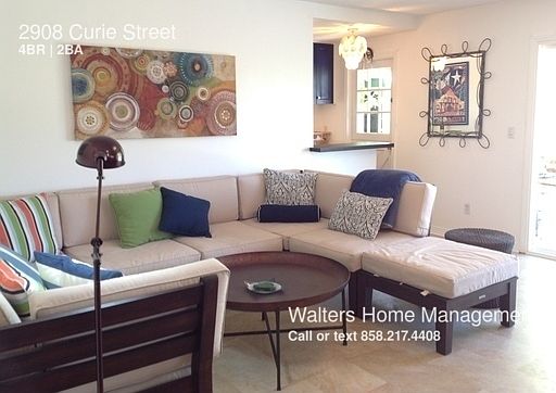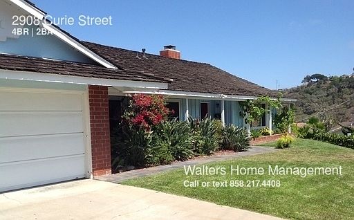 SCHEDULE A SHOWING ONLINE AT: showmojo.com/lh/8c0726c007 Schedule a showing online by visiting and clicking "Schedule a Showing"! Contact Dallas for more information at (858) 692-9179. Must see this wonderful upgraded 4br 2ba single level home! An entertainer's delight with an open, bright and flowing floor plan which leads you to an amazing back yard featuring lush grape vines. Enjoy the canyon breezes that flow through the home. Hard surface flooring throughout except for one carpeted bedroom. There's room for everyone! With the kitchen at the heart of the home, casual dining and family room are to one side and formal dining and living room are to the other. Great central location with easy access to 52, 5 and 805 Freeways. Just ten minutes to UCSD. Soak in the sun and surf in nearby La Jolla or Pacific Beach. Schools are Spreckles Elementary, Stanley Middle School and University City High School. Small pet negotiable with additional deposit. WALTERS HOME MANAGEMENT IS THE ONLY AUTHORIZED AGENT CONTRACTED TO REPRESENT THE OWNER OF THIS PROPERTY. CalBRE#01255583 2 Car Garage Beautiful Backyard! Elfa Closets Gas/Wood Burning Fireplaces Single Story Washer/Dryer/Frig Included