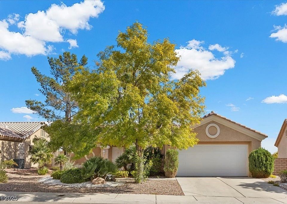 This beautifully maintained 2-bedroom, 2-bath home nestled in the heart of Sun City Summerlin, one of Las Vegas’ premier 55+ active adult communities. Open floor plan with upgraded tile flooring throughout, offering a seamless blend of comfort and elegance. The kitchen features ample cabinet space, a breakfast nook.The primary bedroom suite includes 2 closets walk-in closet and an en-suite bathroom with dual sinks and a walk-in shower, creating a private retreat. The guest bedroom is generously sized, ideal for visitors or a home office. A laundry room with extra storage adds functionality, while the attached two-car garage provides convenience and additional space. Outside, the covered patio and low-maintenance landscaping offer a peaceful setting to relax and enjoy the beautiful desert climate. As part of Sun City Summerlin, residents enjoy world-class amenities, including three championship golf courses and four clubhouses with state-of-the-art fitness center an dso much more.