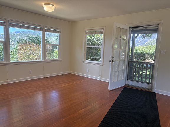 *This property is shown by appointment only. Do not disturb the neighbors. Do not go to the gate without a representative from the property.* Two bedrooms, 1.5 bathrooms Wood, LVT, and vinyl floors Ceiling fans Window air conditioner Laundry room Gated entry Fenced yard Workshop or storage shed with electricity Heritage oak trees Natural grass lawn Gravel driveway and guest parking area Raised garden beds Orchard setting Mountain views Enjoy the tranquility of a country setting in this two-bedroom home set against a mountain backdrop in an avocado orchard. After entering through the security gate, a long, semi-private driveway leads to the house where you will find a natural grass lawn shaded by heritage oak trees, gravel driveway, and large, gravel guest parking area. As you step from the covered front porch into the living room, you are greeted by refinished wood floors bathed in natural light from large windows. There is plenty of room for both a seating area and dining area in this large space where a ceiling fan helps keep the temperature comfortable while the windows allow you and your guests to enjoy beautiful mountain and orchard views. The kitchen, hallway, bathrooms, and laundry room have easy-care vinyl floors, and the laundry room has a door leading to the fenced backyard with low-maintenance landscaping and privacy screening. In the primary bedroom, wood-look LVT flooring was just installed, as well as a window air conditioning unit that works with the ceiling fan to keep things cool in summer. A large closet and built-in cabinet provide ample storage. The guest bedroom also has built-ins for lots of storage, as well as a ceiling fan, natural light, mountain views, and refinished wood floor. All of this is in a country setting just a short drive from downtown Ojai, Lake Casitas, and Meiners Oaks. Rent: $3,500 per month Security deposit: $3,500 Sorry, no dogs allowed. Landlord pays water, trash, landscaping maintenance. Appliances included without warranty include washer, dryer, refrigerator, and microwave. Gated property Owner pays trash, water, landscaping maintenance. Tenant pays electricity, propane, TV/Internet. This house is located on a ranch with a commercial avocado orchard. No dogs allowed.