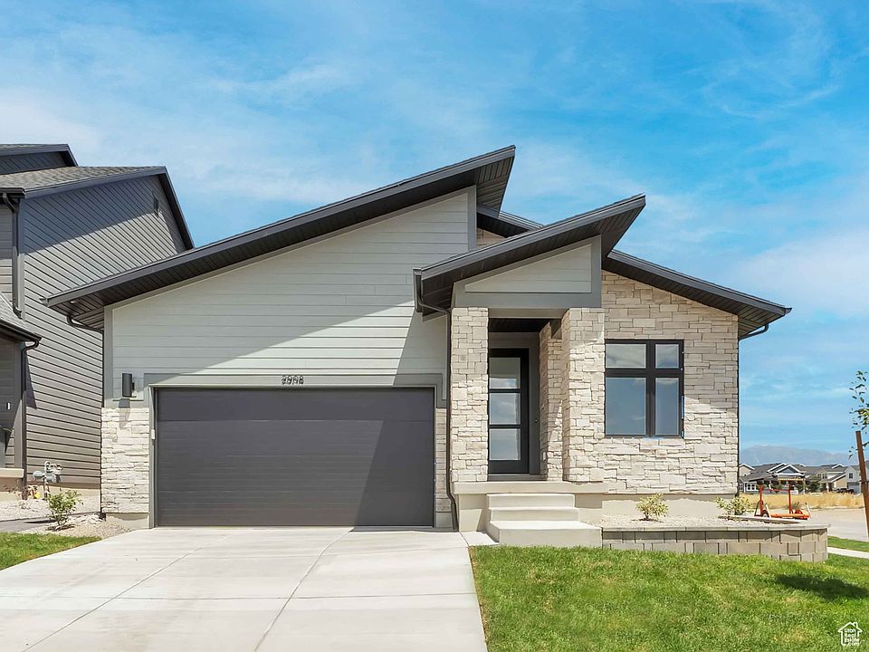 LOT#139 in Lehi Terrace by Symphony Homes, featuring the 'Metro' plan with a modern roofline and appeal. This home is thoughtfully designed with stunning custom millwork throughout, including a grid wall in the flex room, built-in mudroom bench with hooks, and a dramatic shiplap recessed ceiling in the primary suite. The spacious great room centers around a cozy fireplace and flows seamlessly into the kitchen with double wall ovens, 36" gas cooktop range, and generous counter space. Walk-in pantry features countertop and outlets as well. Dedicated laundry room with cabinet/countertop, and spacious 1/2 bathroom with vanity. Enjoy outdoor living on the covered patio. The finished basement offers a large open family room, 9' foundation walls, cold cellar, and an active radon system for peace of mind. Brand new and already fully landscaped! Must see!