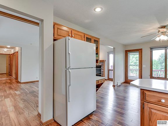 Welcome to this beautiful walk out ranch in the heart of Elkhorn. Well maintained with newer wood floors and custom blinds throughout. Primary bedroom with en suite and walk in closet. Basement has rough in and egress windows just waiting to be finished. Fully fenced yard and 10 x 15 wood deck. Located minutes from Omaha and close to schools.