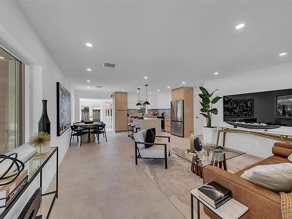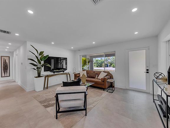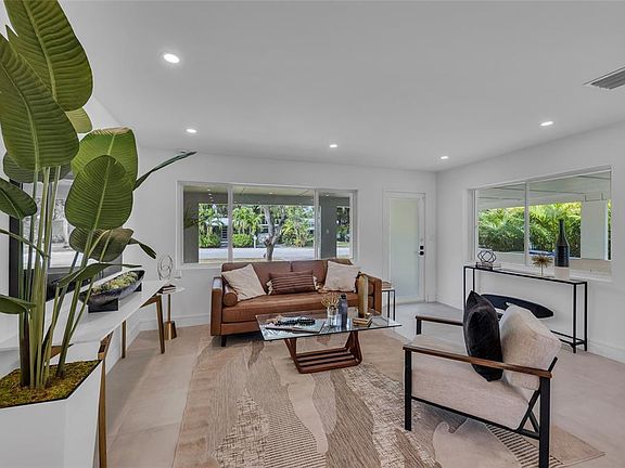 This hidden gem has been completely redone and is move-in ready! Nice neutral colors throughout. 3 nice-sized bedrooms and 2 bathrooms. The modern open kitchen is nicely appointed with stainless steel appliances, quartz countertops, stunning waterfall edge island with plenty of seating, and lots of storage. Modern ceramic tile throughout. The primary bedroom's ensuite has a double vanity and spacious walk-in shower. Updated electrical and plumbing. New air conditioner. Laundry room has added storage. Bonus space off the kitchen can be used as a home office or other flex space. Private backyard is great for entertaining. This home is on a quiet street just minutes away from Wilton Drive, restaurants, shopping, entertainment, and more! Come and see what all this home has to offer!