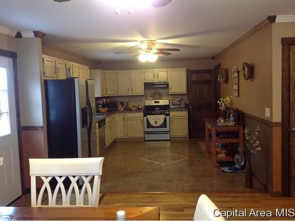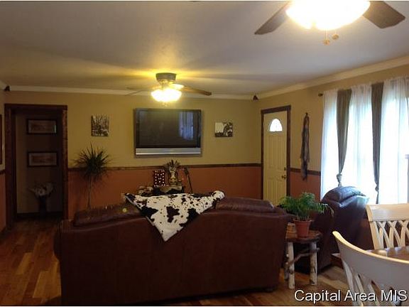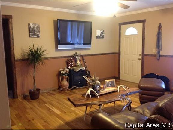 Perfect for a handy man or creative woman needing lots of storage buildings! This beauty is full of surprises on almost 5 acres! Metal building has full bath and heat/ AC! House has 2 beds up and 3rd bed in basement. Theater room and wet bar in basement-great man cave or entertaining. Beautiful hardwood floors-solid wood doors-open floor plan. 2 car garage w.extra 2 car storage in 30x40 metal storage building--3 rd Farm type barn behind metal building. Garage has 16' doors-also, a nice deck overlooking back of property. Perfect for horses, lots of deer & nature. North Morgan water coop .