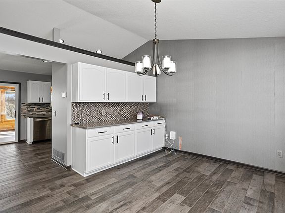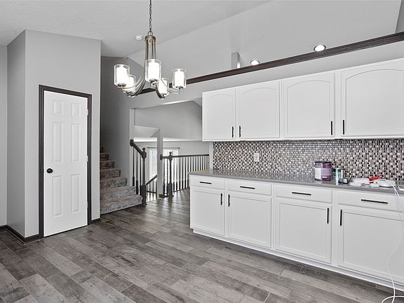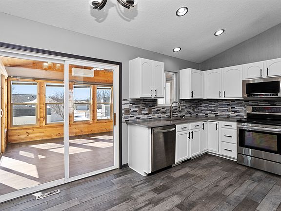 Two Garages! 1850 sq ft of finish, 4 beds & 2.5 baths, an awesome 3 seasons porch, 3 car attached garage PLUS another garage with shop! So much to love in this 4 level split with fenced in yard. Main level boasts an updated kitchen with stainless steel appliances, eating area, and formal dining room. Down few steps find the nice sized living room with fireplace, half bath and laundry. There are 3 bedrooms upstairs, 2 sharing a full bath, while the primary suite has it's own private full bath. The lower level is finish with egress window and small closet. Plenty of garage space with the 3 car attached. There's a garage door on the back of it for easy access to the large detached garage and shop.