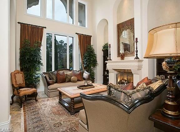 H.7994 - This exceptional Mediterranean custom built estate home is defined by exquisite architectural details, luxuriant finishes, and quality appointments. The cream palette punctuates the rich dark cabinetry, doors, wood coffered ceilings, and warm tone travertine/onyx & hardwood flooring. Spanning 7,312 sq. ft. the interior offers flow with every room accessing beautiful outdoor spaces. The family room opens seamlessly to the loggia, summer kitchen, fireplace, & grand outdoor spaces highlighted by saltwater pool, spa, & fountains bordered by Italian cypress trees & manicured gardens. The chef's kitchen features stunning cream tone granite counters, island, breakfast bar, nook, walk-in catering pantry and state of the art appliances. An elaborate formal dining room is embellished with stone niche, barrel ceiling, & wood/marble flooring adjoining a butler's pantry. The master wing includes an office, luxurious master bedroom, private lounge area, morning bar & his & her spa baths. A winding staircase leads to two loft bedrooms with balcony. Amenities include electric impact screens on loggia, impact windows & doors, 4 bay garage, & high energy efficiency.