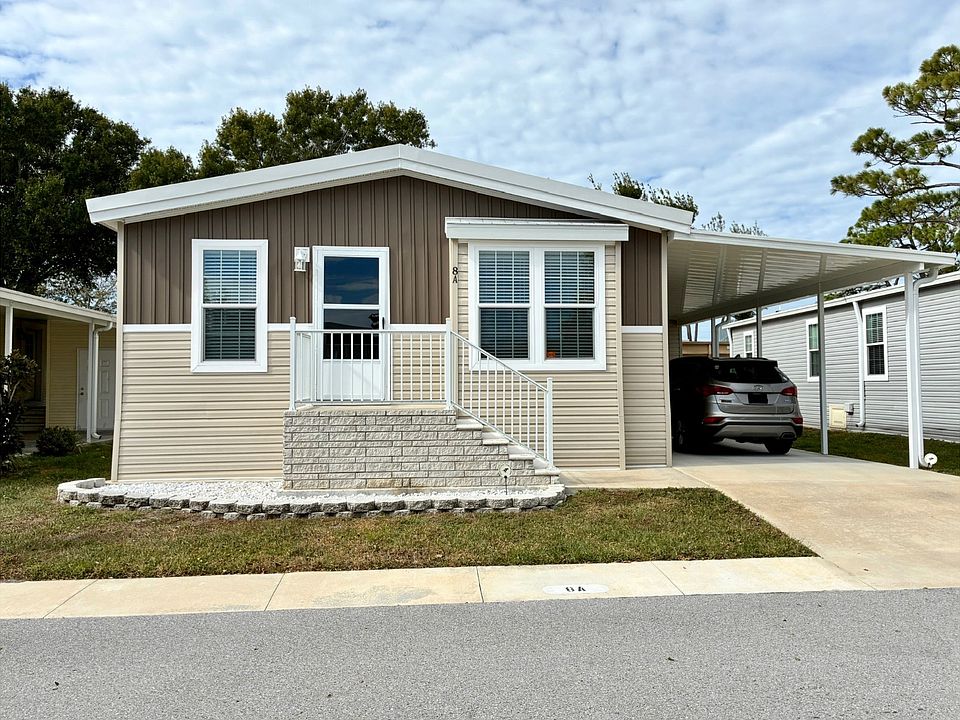 Furniture included 1,248sqft mobile home located in the Sought after park of Serendipity 55+ mobile home park, in Clearwater FL. This beautiful 2020 Skyline Champion home features three bedrooms two full baths, positioned on a perimeter lot. Serendipity is one of the most sought after and beautiful mobile home parts in the area with numerous amenities, events and a great community. Buyer has 15yr warranty on the roof.Easy drive to beaches, entertainment, shopping and churches. Pets allowed with service animal documentation. Lot rent is currently $883 a month which includes trash pass thru tax, lawn service and stormwater fees. DON'T MISS THIS ONCE IN A LIFETIME OPPORTUNITY!