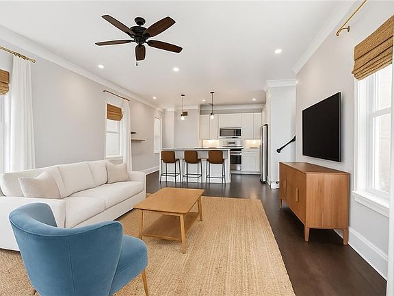 Built in 2020, this charming and spacious Freret-area home offers 4 bedrooms, 2.5 bathrooms, and a generous fenced yard for outdoor living. Designed for both comfort and entertaining, the open-concept layout features a gourmet kitchen with stainless steel appliances, a 5-burner gas stove, marble countertops, breakfast bar, and classic subway tile backsplash. The first-floor primary suite includes two walk-in closets and a luxurious marble bath with soaking tub, walk-in shower, and dual vanities. Upstairs, a full bath with double vanity and quartz counters serves the additional bedrooms. Thoughtful details throughout include a built-in desk with marble top, cottage-style exterior with reclaimed brick steps, a welcoming front porch with iron railing, and a gas lantern entry. Energy-efficient construction and affordable homeowners insurance make this home both practical and inviting. Additional amenities include a security system with 4 exterior cameras and a 20” LED monitor, sprinkler system, and off-street parking via a private driveway.