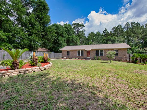 Welcome to your charming retreat in the heart of Crestview! This well-maintained all brick home blends modern updates with classic style, featuring sleek gray vinyl flooring throughout and fresh finishes that give it a crisp, clean feel from the moment you walk in. Both bathrooms have been tastefully renovated offering a touch of comfort where it counts. The spacious front and back yards are perfect for BBQs, tossing a football, or simply enjoying the Florida sunshine. Out back, you'll find a large carport that easily fits two vehicles, a handy shed for all your tools and lawn gear, and even room to park an RV...no HOA drama here! With major systems in great shape you can move in with confidence. This place has a way of feeling like home. HVAC 2017, WH 2015, Roof 2021 and copper plumbing.