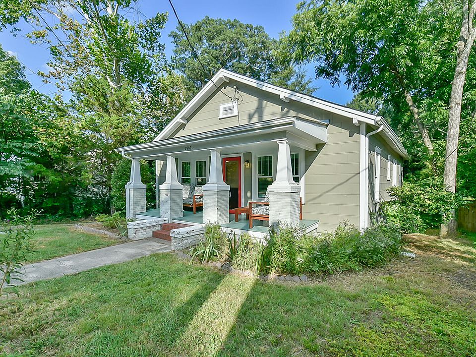 Welcome to 2909 Chapel Hill Road; a quintessential 1930's Craftsman bungalow with a spacious front porch, 4 over 1 windows (vinyl replacement, thank you very much). high ceilings and fabulous natural light. The deep lot offers tremendous space for exploring or expand the fenced area to give fido an amazing yard. The walk-out basement gives you storage, a bonus given 1930s home aren't known for their closet space. The finished, wired outbuilding was used as a home office and there's a body weight work-out apparatus in the shade behind it. Pollinator plants abound and there's a rasberry patch in the backyard. Bring your chickens; there's a fenced and covered area ready for them! This is a great location with a Durham busline stop within steps of the front door; Lakewood, University Hill, Rockwood and downtown Durham are just minutes away.