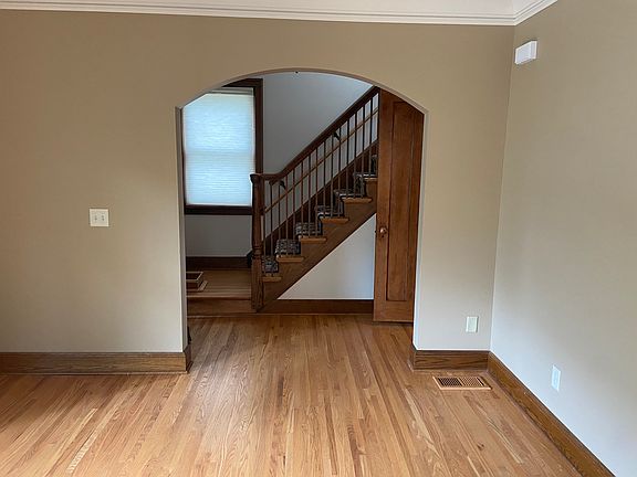 Pets OK with pet deposit. No smoking. Tenant pays gas, water and electric. Off-street parking for one car in detached garage and up to two cars in front driveway. Tenant responsible for snow removal and lawn care. Applications subject to income verification, credit and background check.