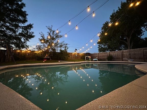 Motivated sellers, looking to close in December! 2,586 sqft 4 bed, 2.5 bath in Jenks Schools & Jenks SE Elementary. Main floor primary suite w/freshly remodeled bathroom. Hand-scraped oak hardwood floors, and dozens of upgrades including a Lenox high-efficiency 3-zone HVAC system & new energy-efficient windows. 33,000-gallon, 12ft deep diving pool with a new variable-speed pump & updated filtration. Enormous back patio w/fans, lights, speakers, & TV. Yard is fenced with a new shed, French drains, fresh landscaping, and an expanded driveway.