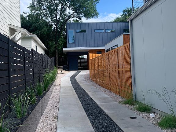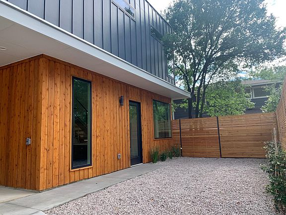 Beautiful home secluded amongst the trees. Location could not be better. Position exactly in the middle of the 6th Street Entertainment District, Manor Entertainment District & Mueller. Right at the end of the new Boggy Creek Hike & Bike Trail; one can just walk over to the MLK Light Rail station and in two stop be in downtown or head north and in 3 stops be in the Domain. This is Executive Living at its best. This apartment comes with two bedrooms and two full bathrooms upstairs. Each room has it's own private balcony. Bedroom #1 has a king size bed with closet contains 3 hanging locations as well as 2 shelves. Bedroom #2 has a Full size bed and a double bar 4' wide closet. The Washer/Dryer is also located upstairs. On the main floor, you will find 10' ceilings with floor to ceiling Windows. There is a half bath, a living room/dining area with polished concrete floors. What makes this house special is all the outdoor space one has. Come relax and work out back under the Live Oaks, or if you only have one vehicle; convert the front flex space into your very own outdoor living room. There is 1 Covered Parking spot in the carport or, as mentioned above, a 2nd vehicle may park in the space directly in front of the house. Access the many bike trails in this extremely friendly and walkable neighborhood. Easily commute to the University of Texas campus (just 2 miles away), hospitals and downtown. Pets are welcome in this house, pending approval and with an additional fee. Minimum of 12 Month Lease.