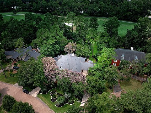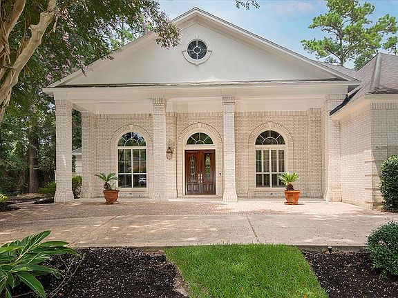 One story home overlooking the 4th hole of the Oaks Golf Course in Grogan's Mill! Circular drive, 3 car garage, covered front porch with gas lanterns, whole house Generac generator, soaring ceilings, new hardwood flooring in 2020, 3 A/C units all less than 2 years old, Ecobee thermostats, Plantation shutters, custom trim work, mouldings and archways. Private study with custom Murphy bed for guests; formal dining has adjacent butler's pantry with beverage fridge; den with dual sided gas log fireplace; sunroom has walls of sliding doors that open to scenic gardens and golf course views. Island kitchen with Subzero fridge, wine storage, warming drawer, Bosch dishwasher and huge walk in pantry opens to the breakfast room and sitting area; owner's retreat has a luxurious bath and walk-in closet with built-ins; two additional bedrooms with en-suite baths and walk-in closets; backyard patio with outdoor kitchen is surrounded by lush gardens and golf course views. Wheelchair accessible too!