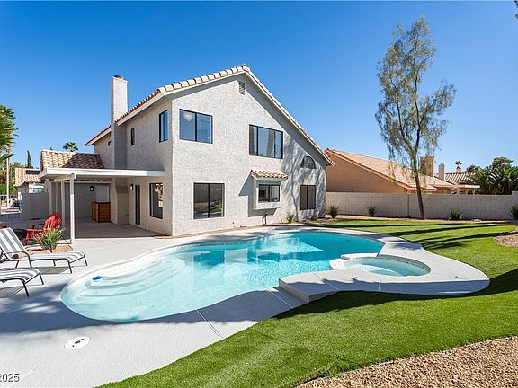 Want NEWLY REIMAGINED LUXURY in The Lakes? Set on a quiet CUL-DE-SAC just minutes from Downtown Summerlin and around the corner from Faith Lutheran. A THREE-CAR GARAGE, EXPANSIVE BACKYARD, and GLISTENING POOL & SPA frame a lifestyle of elegant living from the start. Inside, the DESIGNER KITCHEN steals the show with a WATERFALL ISLAND, TWO-TONE CABINETRY, and a CUSTOM LEVEL 5 FINISHED fireplace anchoring the great room. A retreat-caliber PRIVATE PRIMARY SUITE pairs a FREE-STANDING TUB with a CUSTOM, FULLY ENCLOSED GLASS SHOWER in TWO-TONE TILE, complemented by DUAL VANITIES, a dedicated makeup counter, and FOUR WALL SCONCES that gracefully frame the mirrors. Step outside to NEW PREMIUM TURF, tailored around the curves of the freshly re-plastered and tiled pool and spa. A perfect oasis for hot summer days or calm evenings. This Lakes-area GEM is where COMFORT meets STYLE, and where the best of Summerlin is just minutes away. This home MUST be seen in person.