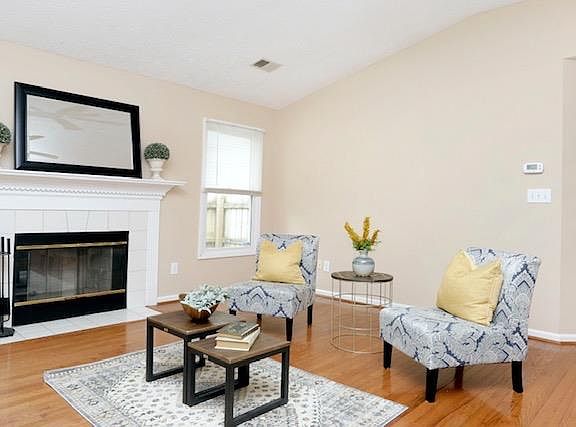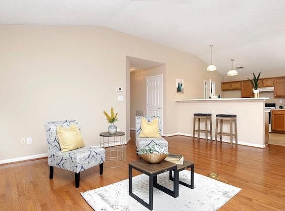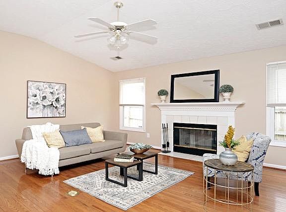Open Sunday 2-4:00. Wonderful Ranch home with gleaming hardwood floors throughout (only vinyl in wet areas)...open and spacious floor plan with vaulted ceilings. Freshly painted and move-in ready. Inviting kitchen with eat-in area as well as kitchen bar. Appliances remain (not warranted). Master bedroom with walk-in closet & private bath. Great room w/ cozy fireplace & gas logs. This home is in move-in condition! Nice size yard with Patio and privacy wood fence. 2 Car attached garage.