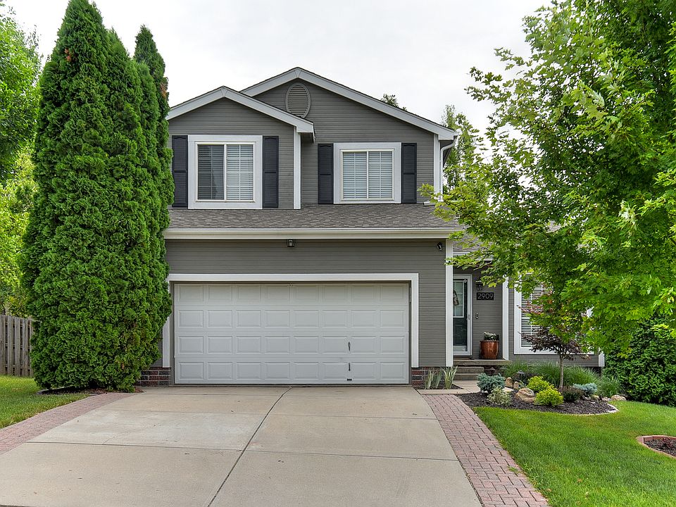 This charming 2 story is picture perfect and move in ready! Open concept with vaulted ceilings, great for entertaining. Kitchen boasts SS appliances, remote lighting under newly painted cream cupboards. L shaped counter faced with stone which matches the stone around fireplace. New lighting with dimmer switches and new ceiling fans throughout house. New carpet on 2nd floor and basement. Double sinks in master bath. Granite counter tops in bathrooms. Cabinets added to laundry area. New landscaping and beautiful water feature adorning front of house. Sprinklers. Fenced flat backyard.