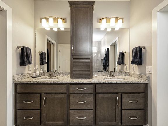 Stunning 4 bedroom Tanzanite ranch resale in popular Brentwood Estates. Better than new with exquisite landscaping & aluminum fence. Open concept with hardwood floors throughout most of the 1st flr. Chef's kitchen with double oven, cooktop, pantry, tile backsplash, & quartz tops. Large master bedroom with tray ceiling, custom walk-in closet & wall safe. Master bath suite has heated tile floors, over sized tile shower, double vanity, & linen cabinet. Awesome lower level with wet bar, dual zone beverage refrigerator, bedroom, 3/4 bath & 2 large transom windows. All information obtained from seller and public records.