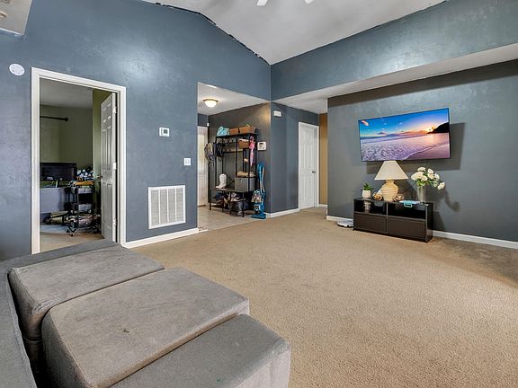 Welcoming front porchLarge primary suiteVaulted ceilingsSplit floor planDouble sinksCovered carportWalk-in closet