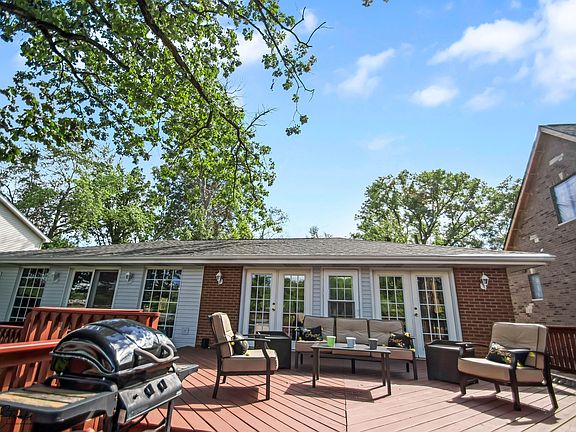 Its Fall and the river views spectacular! Spacious open floor plan draws you into the home where you will be enticed to the river views and entertainment area on back of home. Living room opens to dining area and kitchen. 2 bedrooms, 1 bath. Highlights are the oversized windows & gleaming new floors , new electrical, windows, furnace 2019, hot water heater, washer and dryer 2020. The elegant sunken LR has French doors to the deck, kitchen has custom oak cabinetry & SS appliances, and the large bedrooms have sizable closets. The outdoor space is spectacular! There is a massive tiered deck overlooking the river - perfect for outdoor dining. and pretty landscaping, with a native limestone path to the river. Architect design remodel and installation of water intrusion prevention system makes this riverfront ranch home an especially attractive investment.Near Island View Marina & Aroma Park Boat Club. Home sold furnished.