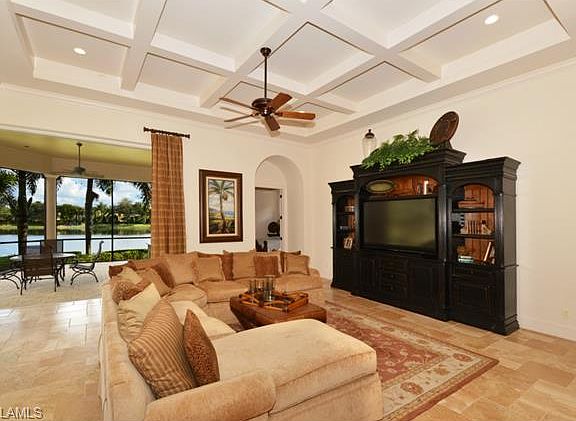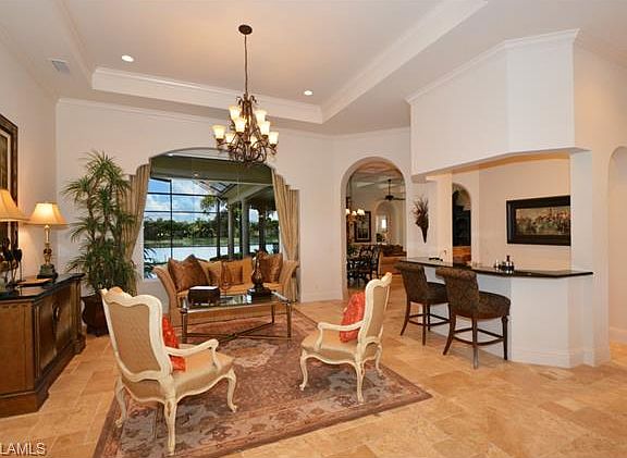 Rare opportunity to acquire a beautiful Amarone at Mediterra home, 3800 sq ft and the best value in Meditrra for a single family home. Incredibly spacious with fresh neutral paint make it easy to transition to a new look. Upscale finishes include granite tops, extensive crown moldings and built-ins. The gourmet island kitchen connects to the family room and opens to the expansive pool deck. The formal living area with a full service bar for entertaining makes this home a place for fun and easy living. This home is built with all the upscale finishes that one would expect in a home in Mediterra and boats a beautiful lake view. This custom four bedroom, plus study and three-car garage represents an excellent choice as compared to many of the smaller villa properties for the same or more money. Amarone at Mediterra is a small enclave of only 12 homes situated along two lakes. Mediterra offers two Tom Fazio golf courses and is well known to be the best golfing experience in the area. Members also enjoy their own private beach club on the Gulf of Mexico.