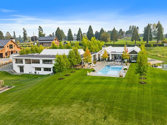 Luxury Estate Acreage! 10 private acres at the end of a quiet no-through street, this stunning 8 bed, 9 bath, 10,000+ sq. ft. custom 2018 home (Built by MEC) is perfect for multi-generational living, feeling like two separate, full-size residences. Thoughtfully designed with exquisite details throughout (Interior by Done to the Nines), the high efficiency home features oversized windows, two gourmet kitchens (3 total), in floor heating, home theater, gym, abundant storage, & 4-bay garage. Outside, enjoy the pool, pickleball court, & expansive patios, all perfect for entertaining. The gated, fully fenced acreage also features city water, outbuildings, garden & small greenhouse & apple trees. This is more than a home, it’s a lifestyle, a retreat, a once-in-a-lifetime opportunity!
