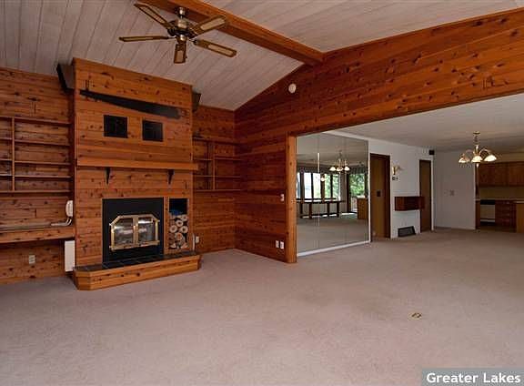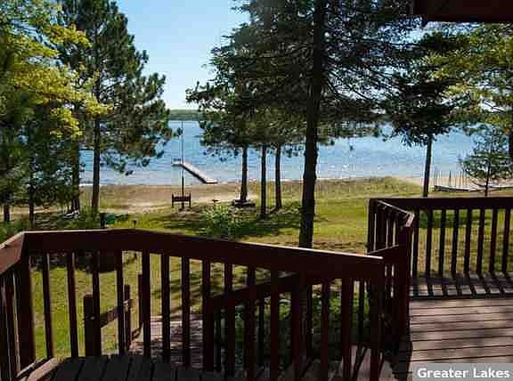 Horseshoe Lake - ENJOY 150’+/- OF EXCELLENT SAND BEACH AND LEVEL ELEVATION IN THIS 2 BEDROOM 3 BATHROOM LAKE HOME FEATURING MAIN FLOORMASTER BEDROOM SUITE, NATURAL WOOD INTERIOR, GUEST BATH WITH JETTED TUB, OPEN FLOOR PLAN WITH A WOOD BURNING FIREPLACE IN THE FAMILY ROOM, AN EXTENSIVE LAKE SIDE ENTERTAINING DECK, LOWER LEVEL WALK-OUT WITH A SPACIOUS BEDROOM, DEN/OFFICE AND SAUNA, PLUS A 2 BEDROOM SEASONAL GUEST CABIN AND AN OVERSIZED 2 CAR DETACHED GARAGE ON 1+/- ACRES OF LAND.