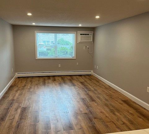 Nice newly renovated top floor 2 bedroom 1 bath unit. Features nice open layout concept. Brand new hardwood flooring, kitchen with large island, quartz countertops, stainless steel appliance. Large bedrooms with lots of closet space. Great location for commuters with less than 10 minute drive to routes 190 and 495. One Year Lease. Heat, hot water and two assigned parking spaces included. No smoking. One cat allowed. No dogs.